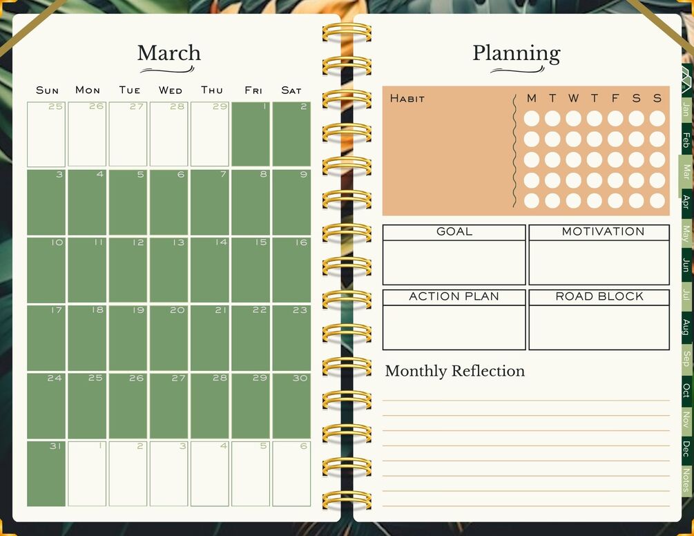Introducing our Enchanted Planner, a whimsical companion that merges functionality with fantasy. With lush foliage and a touch of fairy enchantment, this digital planner guides you through monthly goal planning, offering a delightful journey toward achievement. Whether you're a dreamer seeking inspiration or a pragmatist striving for success, let the Enchanted Planner guide you through a magical landscape of growth and transformation.